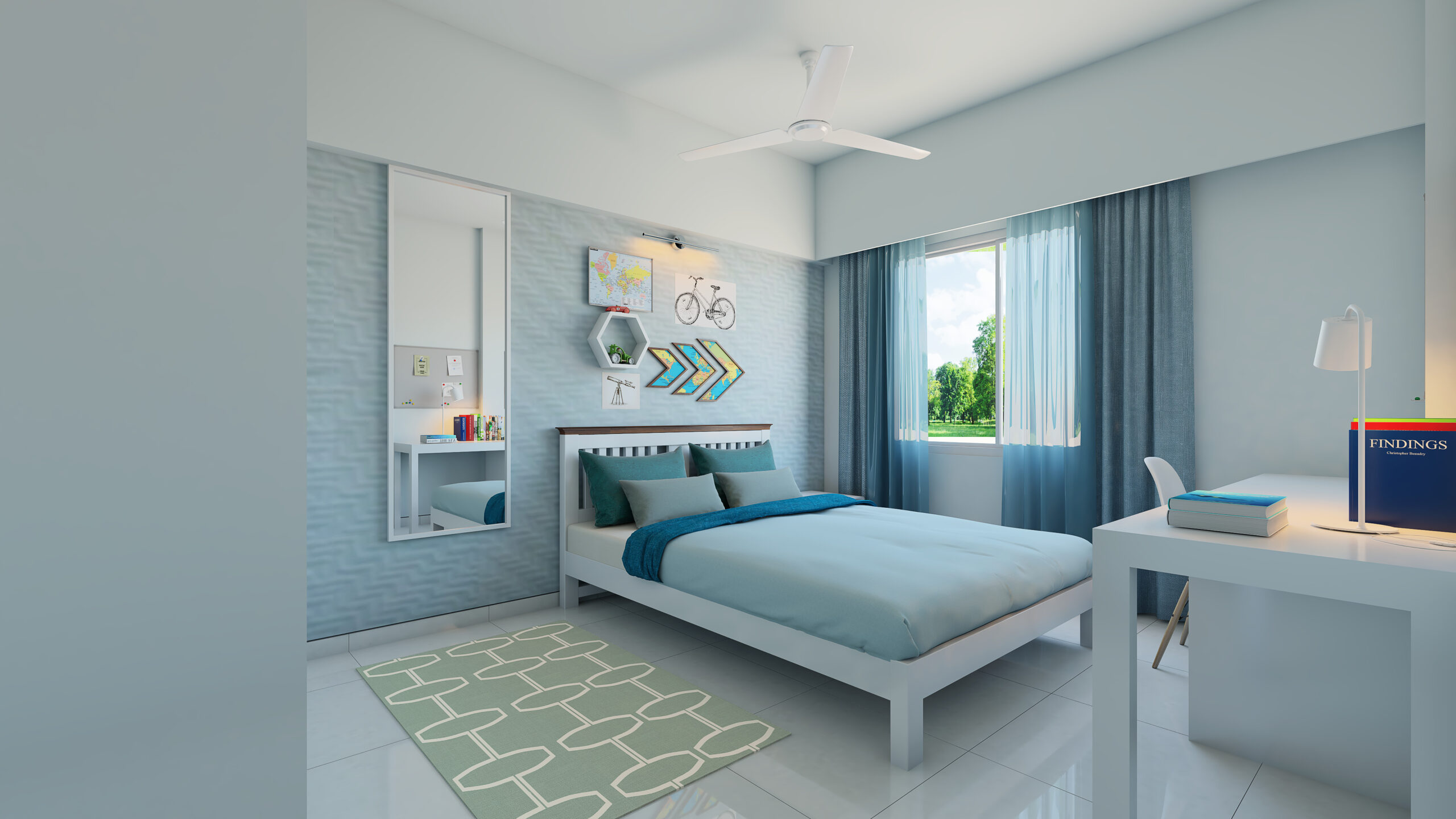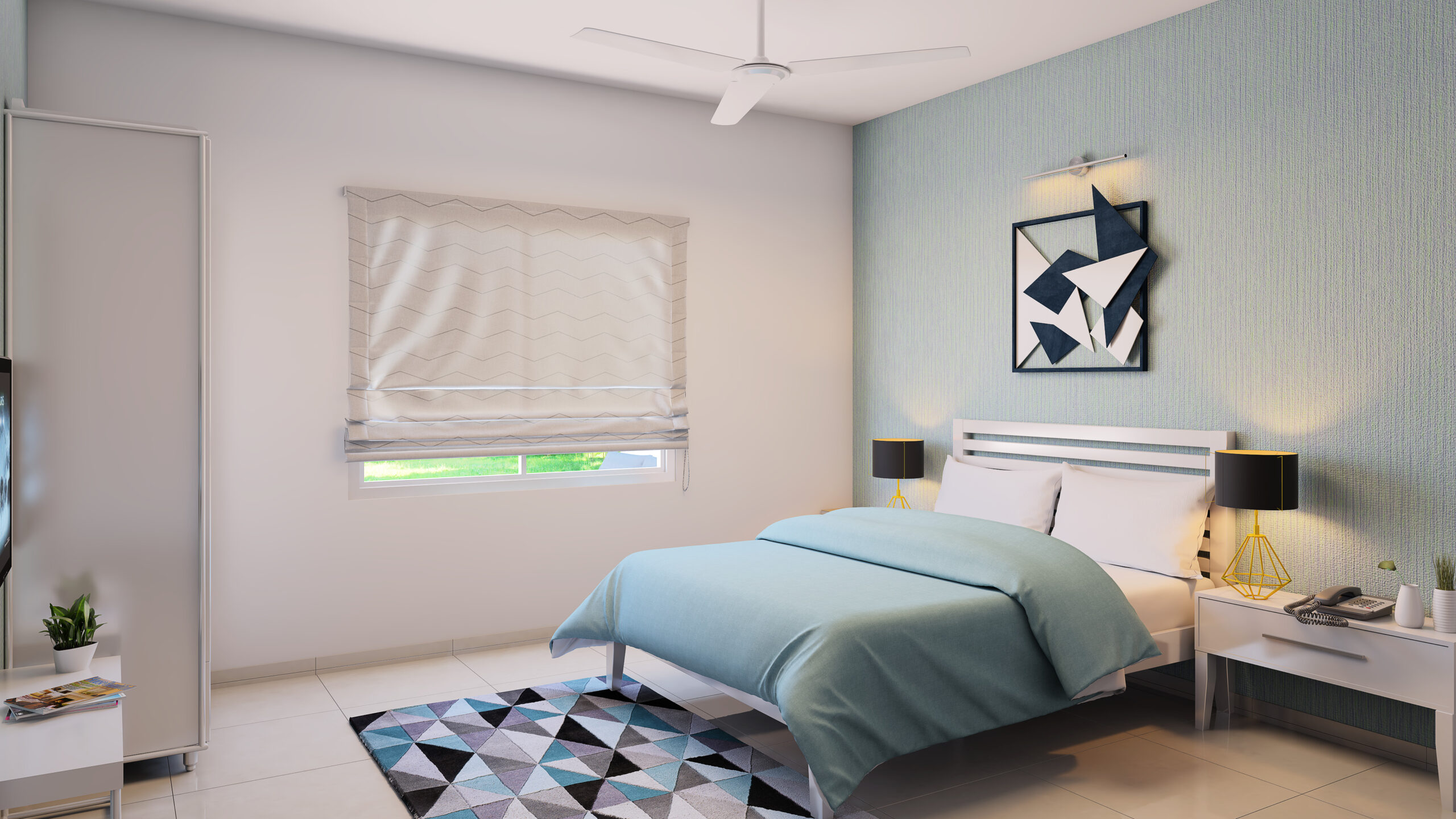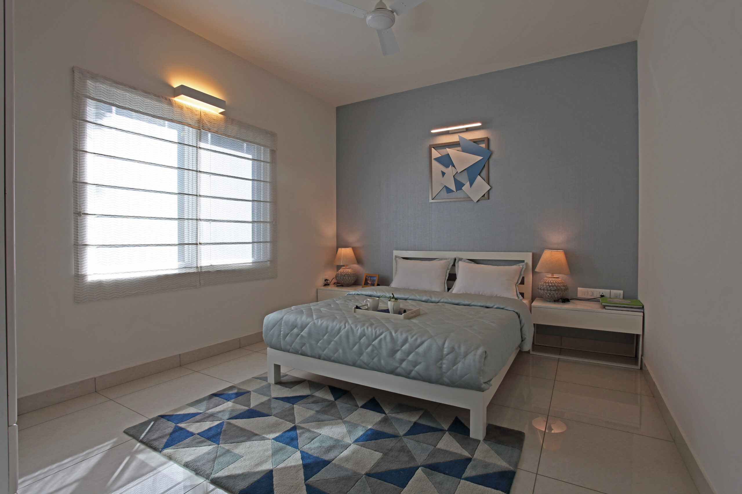 USP- A small apartment- interiors- designed to look and feel spacious by judicial arrangement of furniture,material specification,eclectic colours and appropriate sizing of furniture without compromising on ergonomics and within a restricted budget.