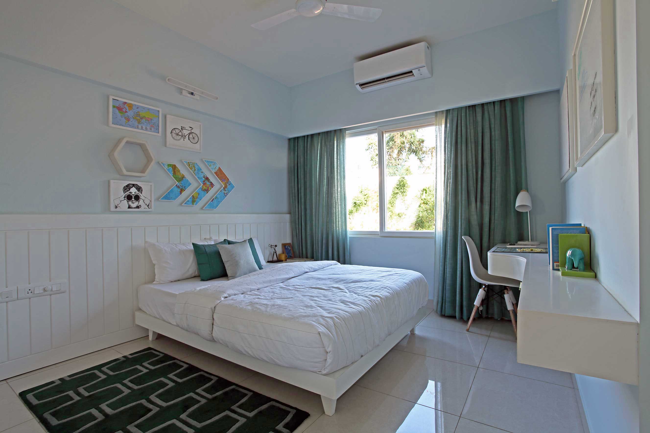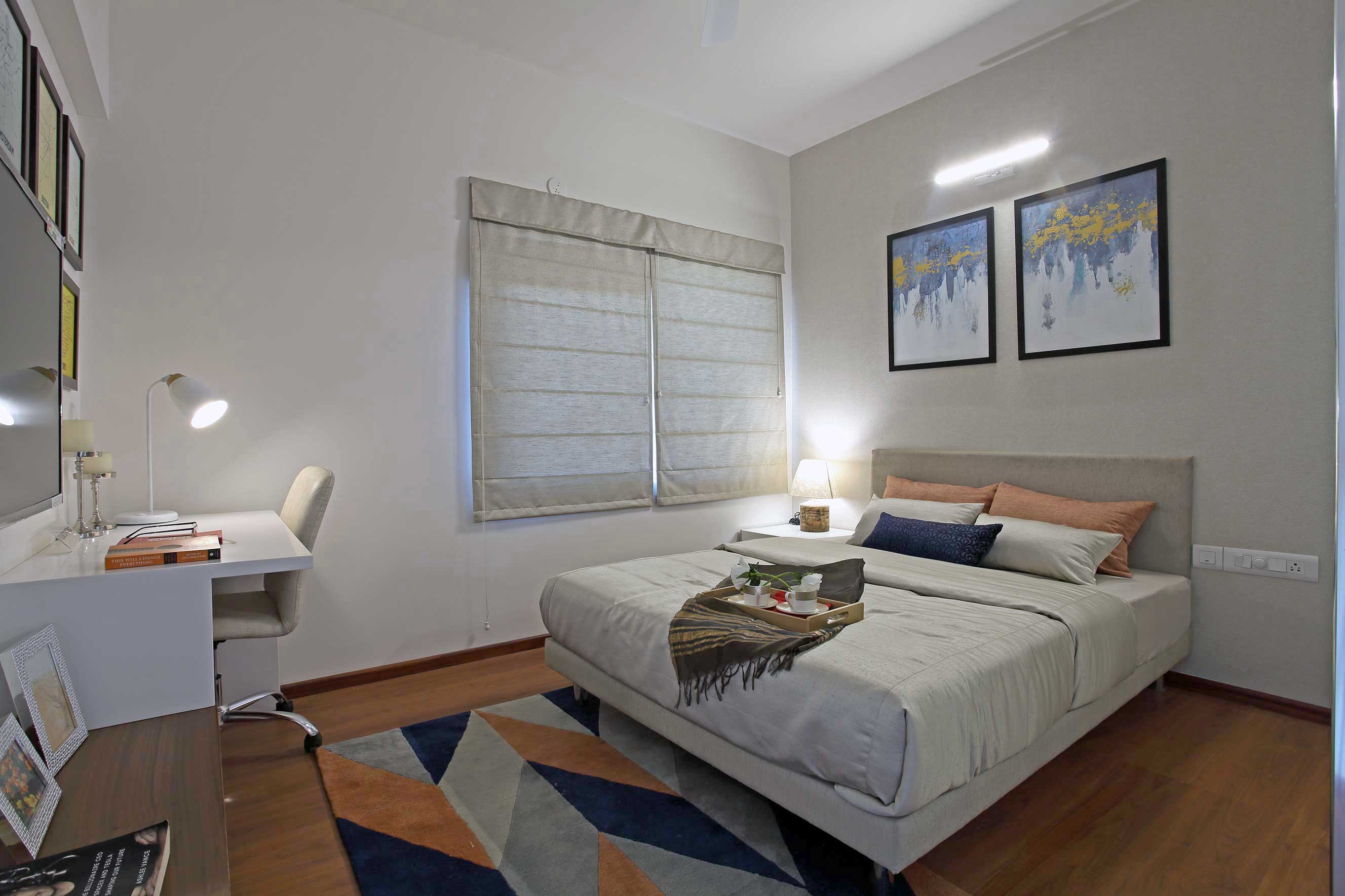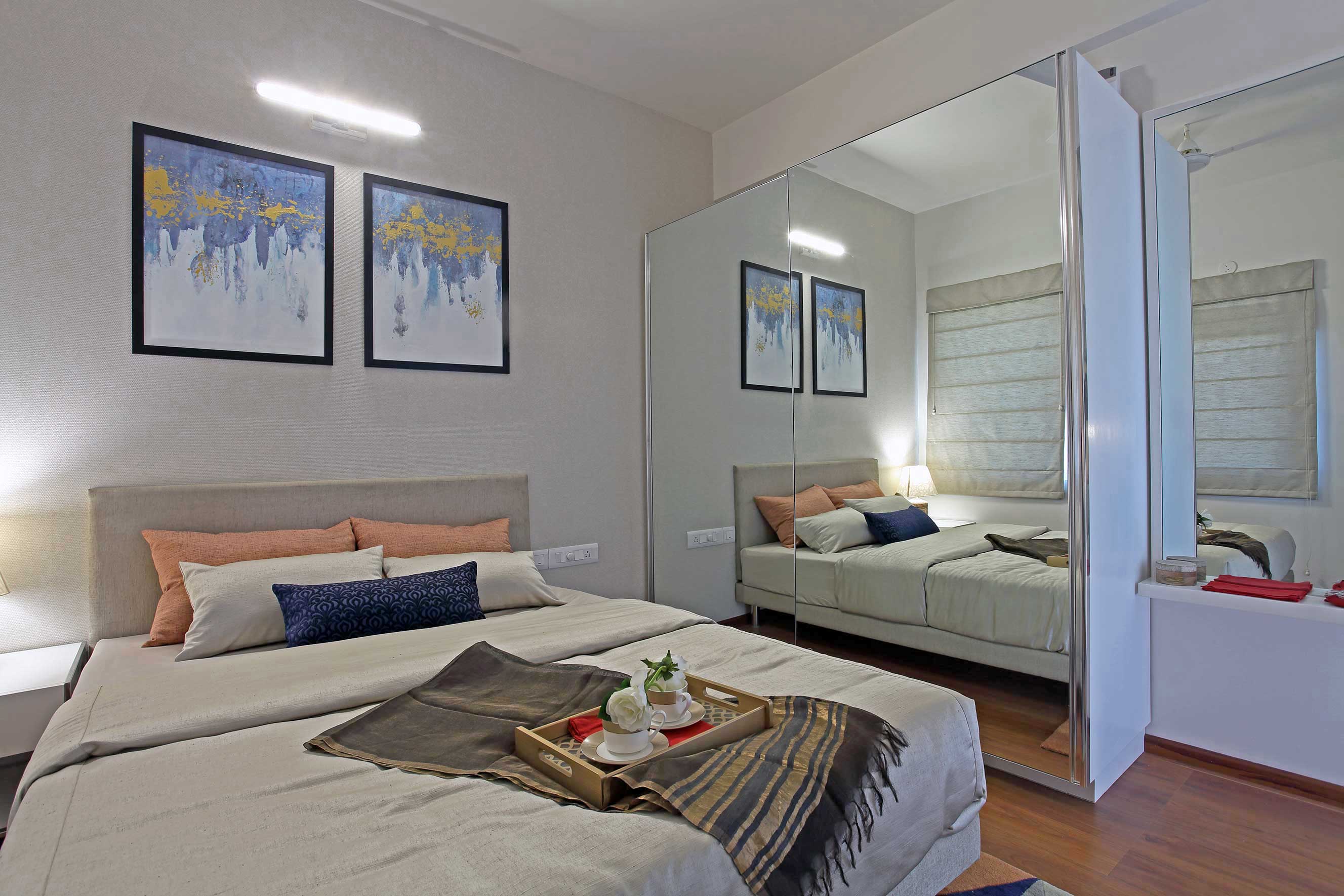 USP- A small apartment's interiors- designed to look and feel spacious by judicial arrangement of furniture,material specification and appropriate sizing of furniture without compromising on ergonomics within a restricted budget.