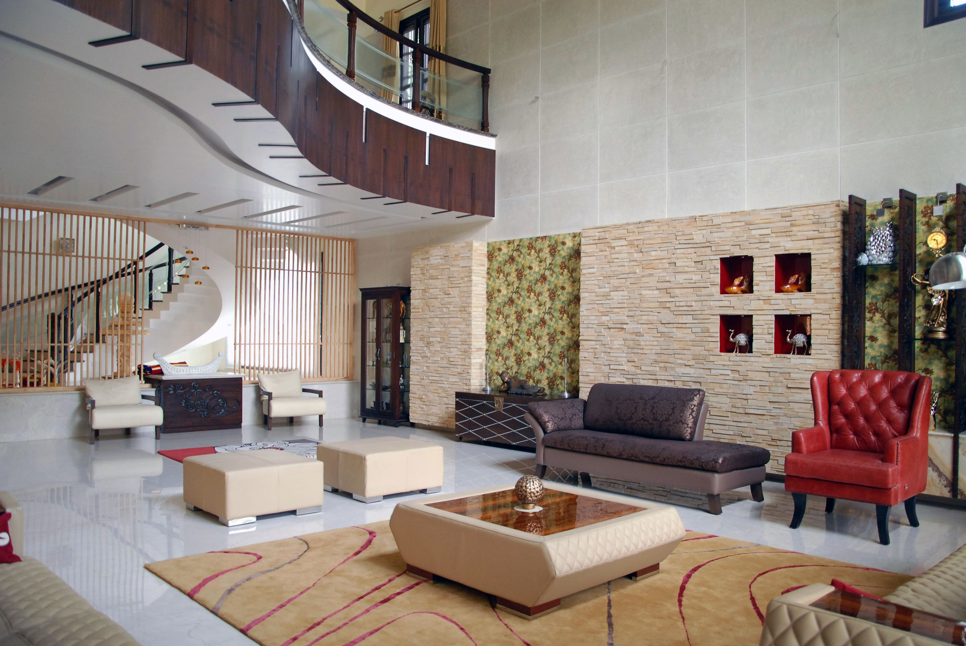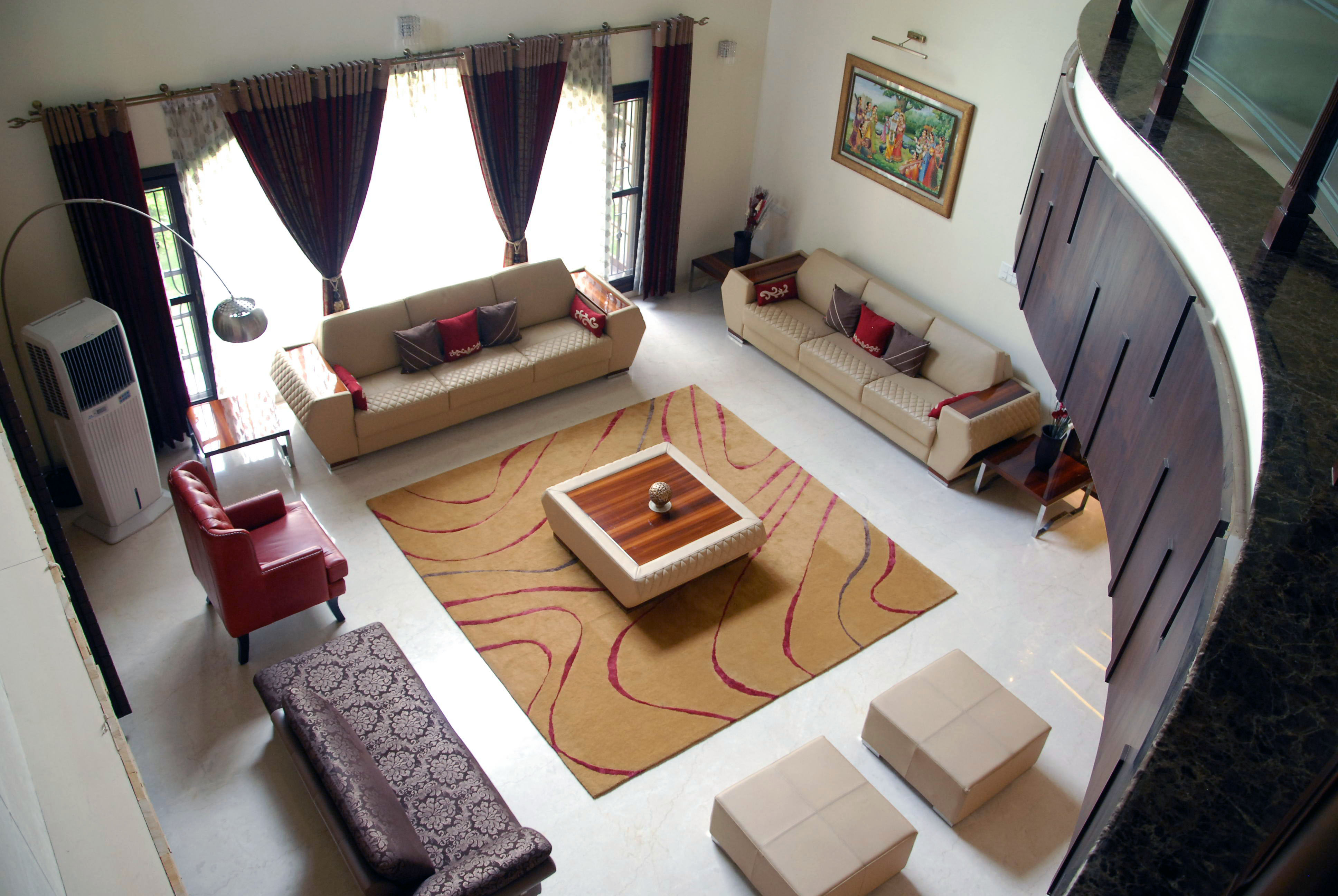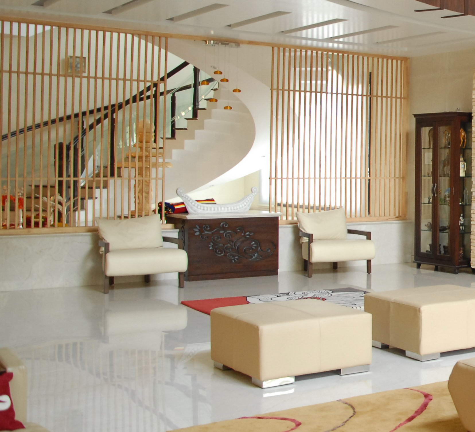 Architectural planning was done to be met with future requirement of having one floor to each son .Ground floor accomdates entrance lobby ,puja ,master bedroom with its dressing room and toilets ,powder room , living , dining and common kitchen for all family members .First floor has family room ,home thatre and yonger sons room along with two guest rooms.